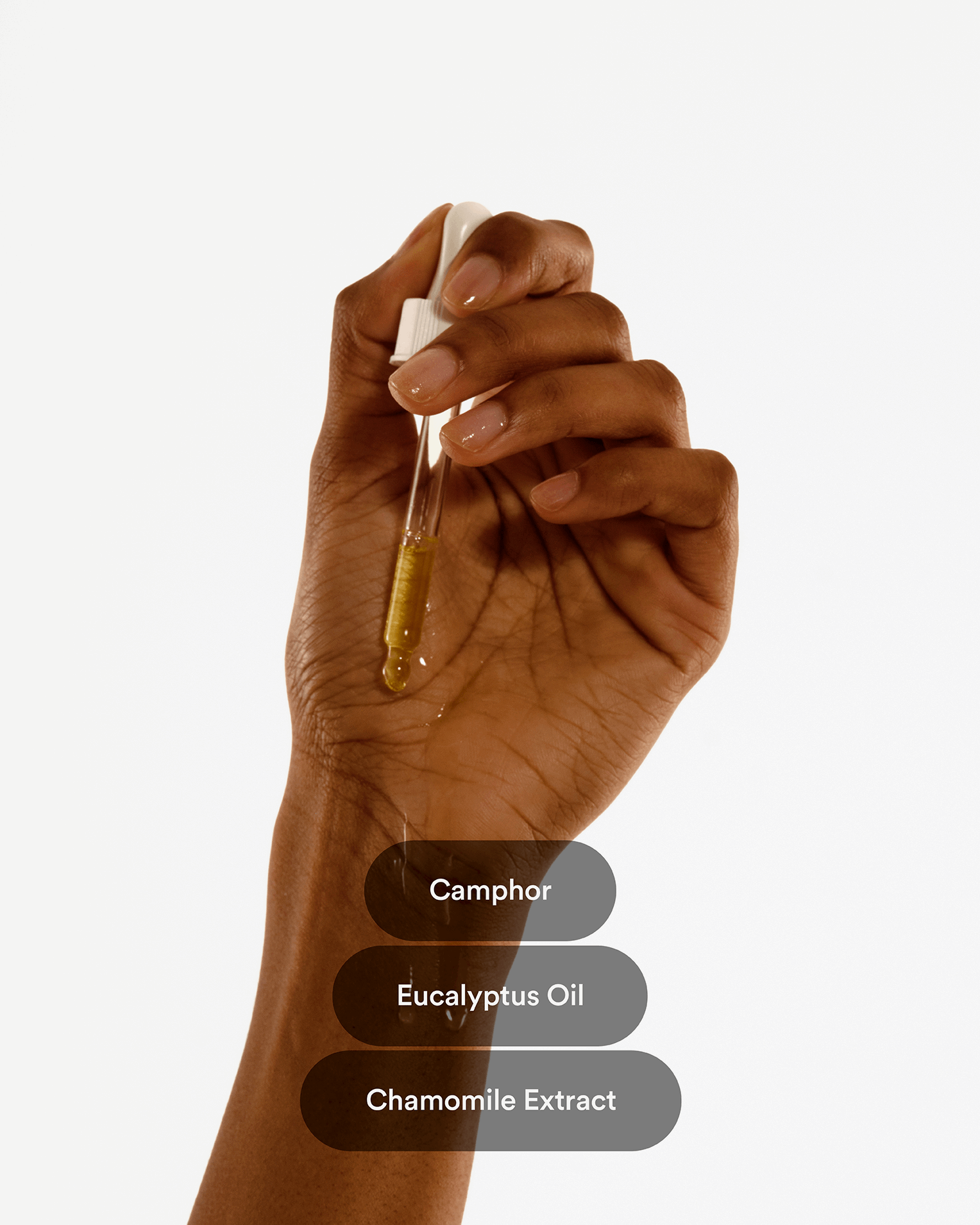 Menthol 5mg, Camphor 3mg, Ginger Extract 20mg, Lavender Oil 15mg, Chamomile Extract 3mg, Eucalyptus Oil 8mg, Iron 30mg